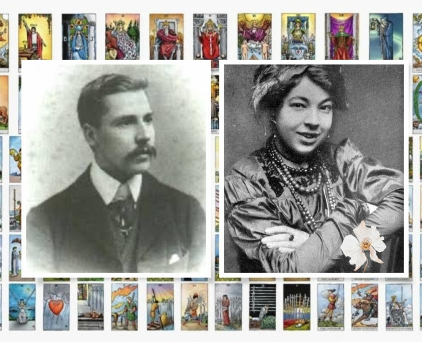 Ik maak gebruik van de zogenaamde Rider-Waite-Smith Tarot set. Het is één van de meest bekende en een veel gebruikte sets. De oorspronkelijke set is in 1909 uitgegeven door de Rider company, ontworpen door Arthur Edward Waite, een Amerikaans-Britse mysticus, dichter en esotericus en geïllustreerd door Pamela Colman Smith, een Engelse kunstenares. Vandaar de naam Rider-Waite-Smith.